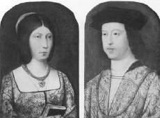 | 在15世紀隨著伊比里亞半島的基督教勢力擊敗穆斯林勢力(在西班牙歷史上稱為「收復失地運動」),半島上兩個基督教強國-阿拉岡-卡塔羅尼亞與卡斯提-萊昂開始步向聯合。15世紀後期阿拉岡-卡塔羅尼亞王子費爾南多二世Fernando II透過與卡斯提-萊昂公主伊沙貝一世Isabel I結婚,先後取得卡斯提-萊昂和阿拉岡-卡塔羅尼亞的王位,奠定兩國統一的基礎。1516年當兩人的外孫卡洛斯一世Carlos I繼承兩國的王位後,兩國最終永久合併為「西班牙王國」。 | |