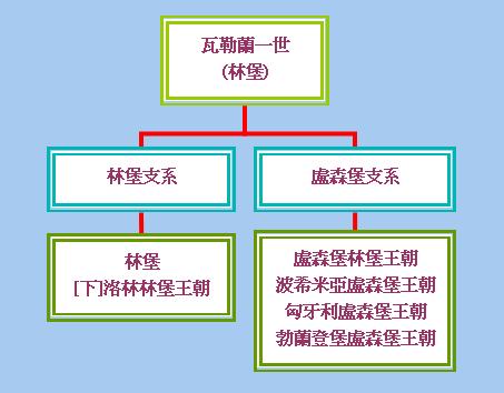 註1:那慕爾位於今比利時南部,是低地國家地區(Low Countries,指今尼德蘭、比利時、盧森堡三國地區)的一個小諸侯國。在1263年那慕爾便轉歸丹皮埃爾Dampierre王朝統治,因此林堡-盧森堡家族並未在那慕爾建立世襲統治。墨洛溫家族是法蘭克的統治家族。約481年薩利安.法蘭克Salian Frank人首領克洛維斯一世Clovis I統一法蘭克人諸部,建立法蘭克王國,成為[西]羅馬滅亡後西歐的最強大政權。但在511年克洛維斯一世死後,四子分立,從此法蘭克經歷多次分裂和統一,出現多個地方封建政權,包括梅茨Metz、巴黎Paris、奧爾良Orleans、蘇瓦松Soissona、奧斯特拉西亞Austrasia、奧爾良和勃艮第Orleans and Burgundy、勃艮第Burgundy、紐斯特里亞Neustria、阿基坦Aquitaine、紐斯特里亞和勃艮第Neustria and Burgundy。由639年起,法蘭克諸地方政權王權衰落,由宮相專權,史稱「懶王時期」,其後政權落入卡羅林家族手中。約751年墨洛溫王朝最終被權臣丕平三世推翻。