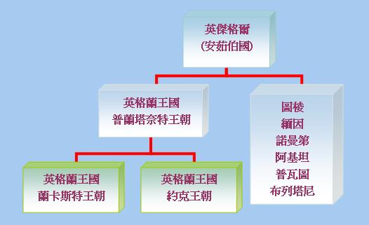 註1:部分史家以此事件作為「神聖羅馬帝國」建立的標誌。有關「神聖羅馬帝國」建立年份的種種說法,請參閱《歷史名詞辨正》網頁中的有關討論。普蘭塔奈特(意即金雀花)家族原為安茹Anjou(位於法蘭西北部)最早的統治家族,故又稱「第一安茹First Anjou家族」。約879年英傑格爾Ingelger建立安茹伯國,是為普蘭塔奈特王朝之始。11-12世紀安茹伯爵先後兼領圖棱Touraine、緬因Maine、諾曼第Normandy、阿基坦、普瓦圖Poitou、布列塔尼Brittany,形成「安茹霸權帝國」。1154年安茹伯爵取得英格蘭王位,自此英格蘭國王兼領法蘭西多處領土,威脅法蘭西王權,成為日後兩國矛盾乃至百年戰爭的原因。13世紀初法蘭西國王奪取普蘭塔奈特家族在法蘭西的大部分領地,該家族僅保有對阿基坦(此後稱為吉延Guyenne或加斯科尼Gascony)的統治權,直至1453年百年戰爭結束後,阿基坦最終被併歸法蘭西。普蘭塔奈特家族在英格蘭的統治則維持至14世紀末,此後英格蘭王位由該家族的兩個支系-蘭卡斯特Lancaster家族和約克York家族爭奪,並引發英格蘭歷史上的「玫瑰戰爭」,直至1485年都鐸Tudor家族的亨利七世Henry VII平定內亂,從而結束普蘭塔奈特家族及其支系在英格蘭長達三百多年的統治。