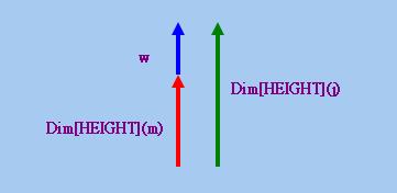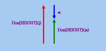 上述原理亦可應用於語句(16),但須作出適當調整。根據該句,「定位向量」w應以Dim[HEIGHT](j)的「終點」為「起點」,其「終點」應等於Dim[HEIGHT](m)的「終點」。但由於|Dim[HEIGHT](j)| > |Dim[HEIGHT](m)|,所以w應指向下(請參看下圖)。