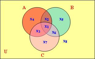 如果集合定義涉及三個集合變項,我們便要利用下圖: