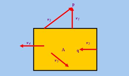 在上圖中,橙色的長方形是點集合A,黑色的圍邊就是Boundary(A)。在圖中五個「向量」中,v1-v3是「邊界向量」,v4和v5則不是。對應於Boundary(A)以外的點p來說,v1是以p為「終點」的長度最小的「邊界向量」。請注意對於其他「邊界向量」例如v2來說,均有|v2| ≥ |v1|。由於p ~∈ A,所以v1是A的「外部最近向量」,即Ext(v1, A)。同理,我們有Int(v3, A)。
