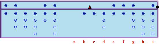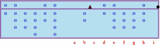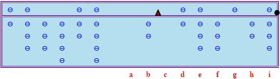 現在假設我們在計算2050328 / 683479時把商數估為3。在接下來的「減積」過程中,我們可以順利從c、d檔減去3 × 6 = 18,從d、e檔減去3 × 8 = 24,從e、f檔減去3 × 3 = 9,從f、g檔減去3 × 4 = 12,得到以下中間結果: