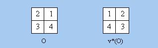 | v | [2 1 4 3] | (1 2)(3 4) |