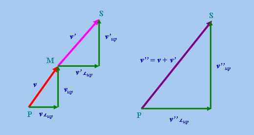 接著求上述兩個向量的和:v'' = v + v',v''就是由P點指向S點的向量。根據向量「內積」的特性,我們有