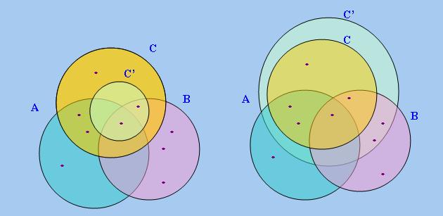 在上圖中,C'分別是C的真子集和真母集,我們看到在上面兩圖中,