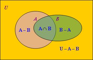 | U的元素 | A − B | A ∩ B | B − A | U − A − B |