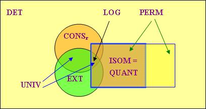 定理3:設Q為「限定詞」,Q ∈ CONSr ∩ EXT當且僅當存在一個「<−,1>型量詞」Q'使得Q = (Q')rel。