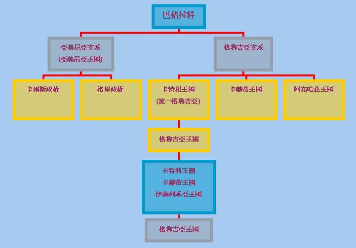 巴格拉特家族的另一支系-格魯吉亞支系則是格魯吉亞地區的統治家族。早在813年,該支系便取得卡特利Kartli之統治權。其後又取得卡赫蒂Kakheti和阿布哈茲Abkhazia之統治權,並於1008年將阿布哈茲與卡特利合併為格魯吉亞王國(卡赫蒂亦於1105年併入格魯吉亞)。1258年格魯吉亞再次分裂。此後格魯吉亞屢經分合,形成多個地方政權,其中卡特利、卡赫蒂、伊梅列季亞Imereti等政權乃由該支系統治。1762年格魯吉亞重新統一,但俄羅斯勢力未幾亦伸入格魯吉亞,格魯吉亞終於1802年為俄羅斯併吞。