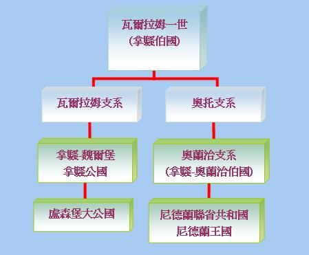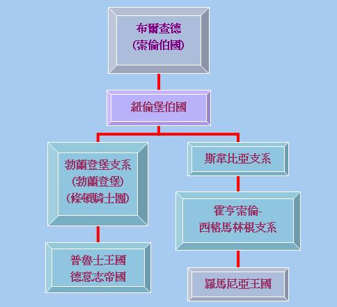 2. 勃蘭登堡支系繼承了勃蘭登堡的統治權。但在1319年此支系的領地為德意志併吞。