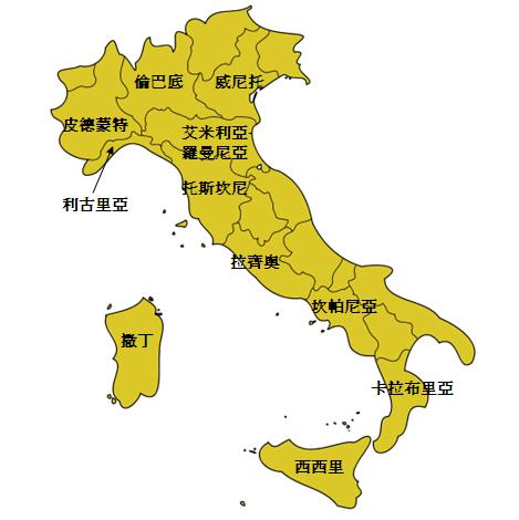 註1:這些(廣義上的)意大利人一般按其所屬國家分別稱為意大利人、聖.馬力諾人等。 註2:撒丁王國的統治者原來統治薩伏依和皮德蒙特,1720年取得撒丁島,改稱撒丁國王,但仍以皮德蒙特為統治中心。因此意大利雖然有一種撒丁語(Sardinian),也屬「印歐語系意大利語族」,但並非撒丁王國的主要語言。 註3:1870年意大利併吞羅馬,教皇退居梵蒂岡,羅馬教皇國滅亡;但梵蒂岡在1929年取得獨立地位,建立梵蒂岡城邦。 |