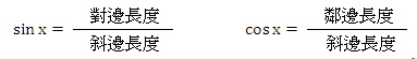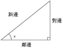 如前所述,我們最初學習的sine和cosine的定義是根據以下直角三角形的角x和三條邊來定義的: